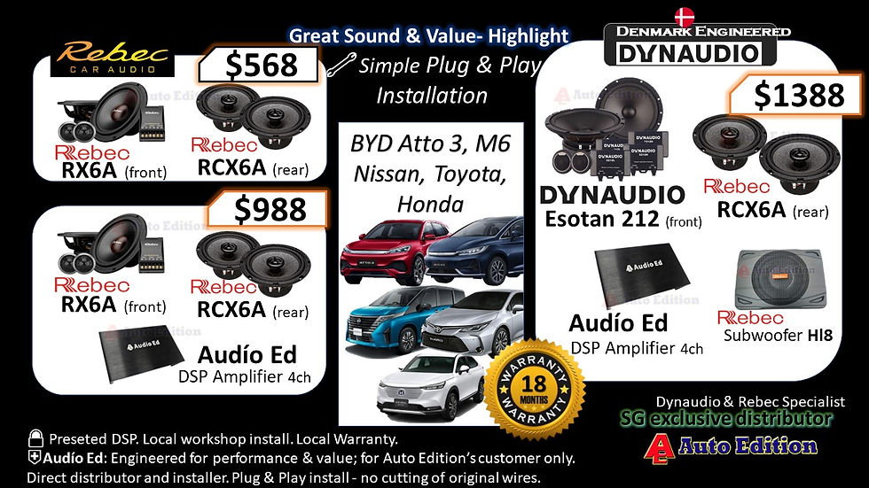 At Auto Edition, we make upgrading car audio upgrades in Singapore simple, affordable, and high-quality. We specialise in premium car speakers, car DSP amplifiers, car subwoofers, and car amplifiers, helping you transform your drive with crystal-clear sound and powerful performance.